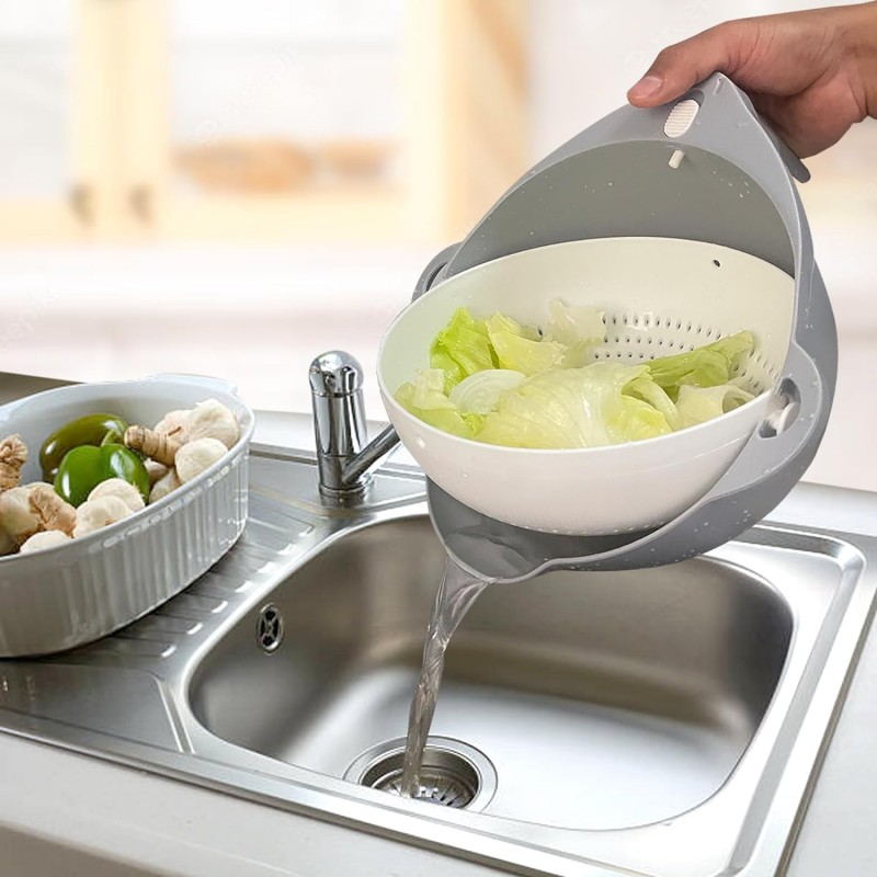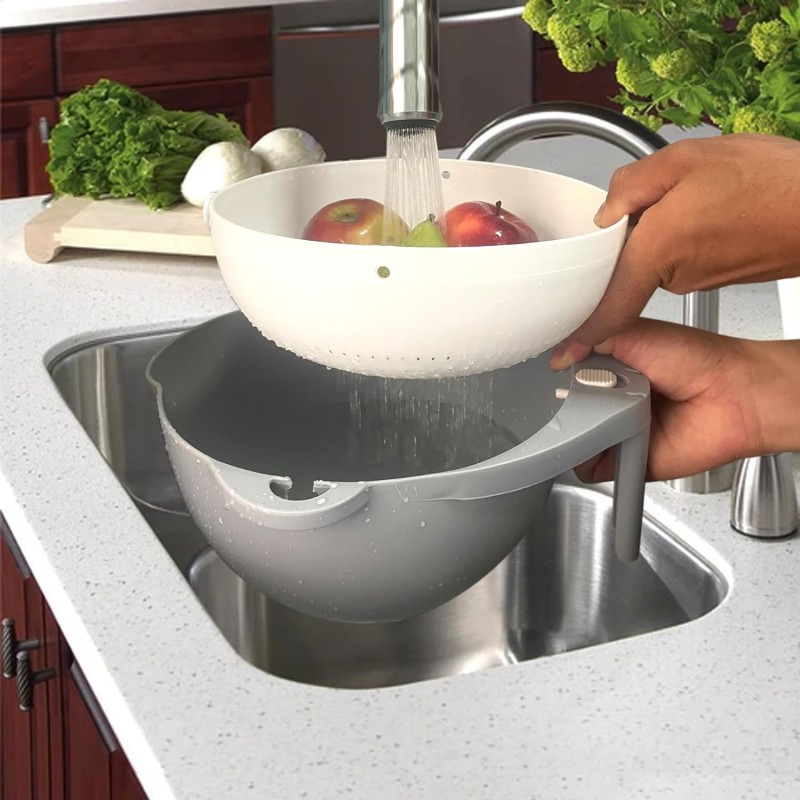 Design 2 em 1: Combina um escorredor e uma cesta, permitindo lavar e escorrer alimentos de forma prática e rápida.