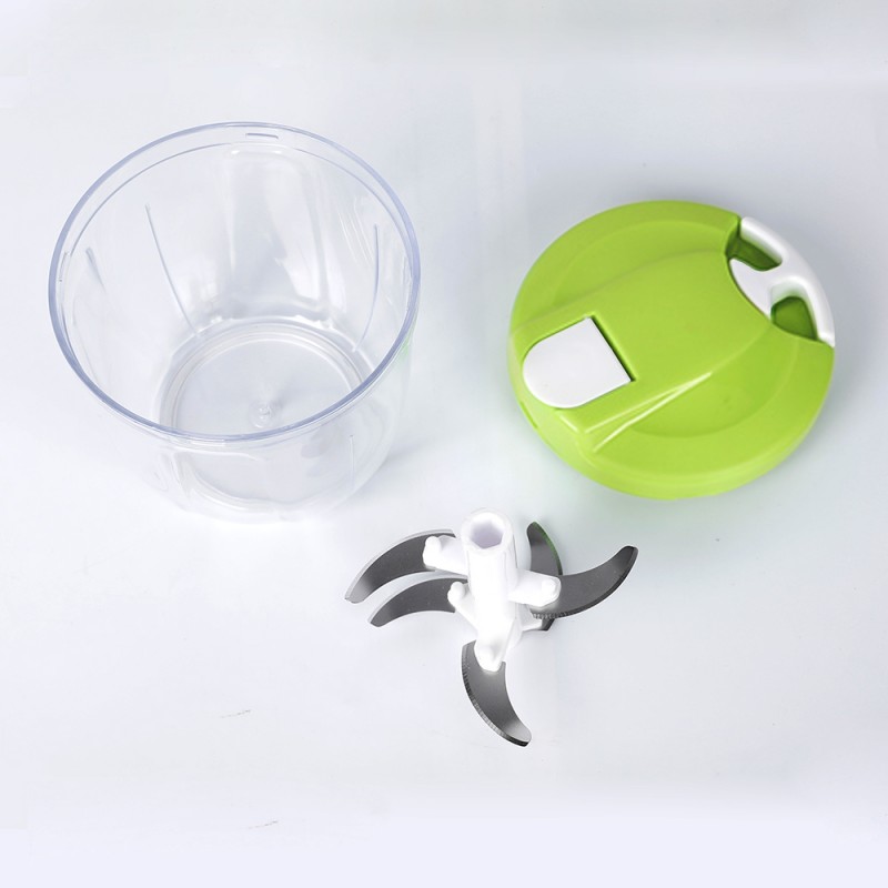 Esta picadora manual é fácil de usar, basta adicionar os alimentos que deseja picar no recipiente, fechar a tampa e puxar a corda de nylon. As cinco lâminas removíveis cortam rapidamente os alimentos em pequenos pedaços uniformes.