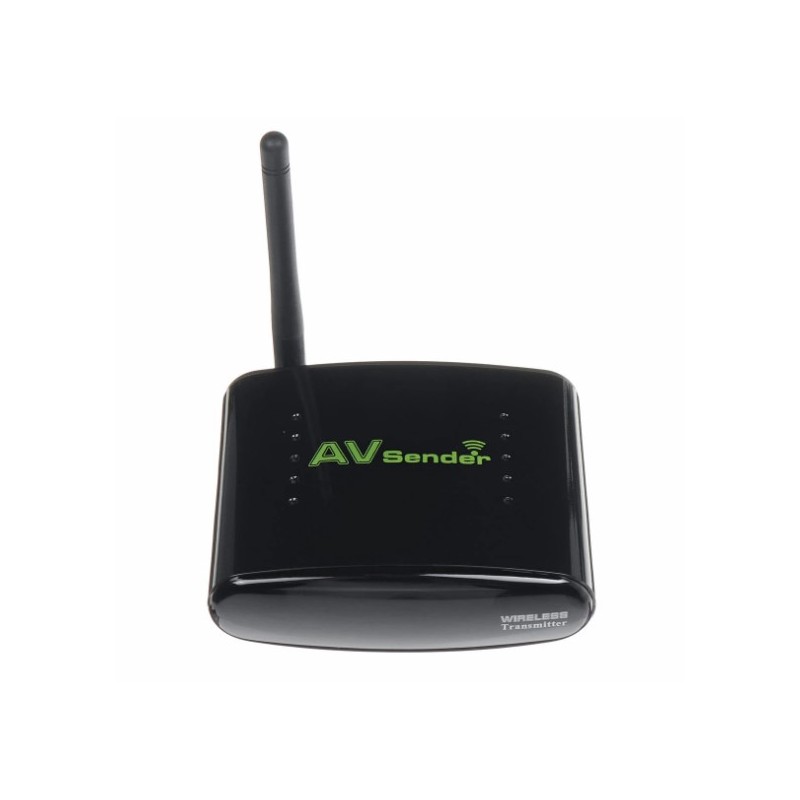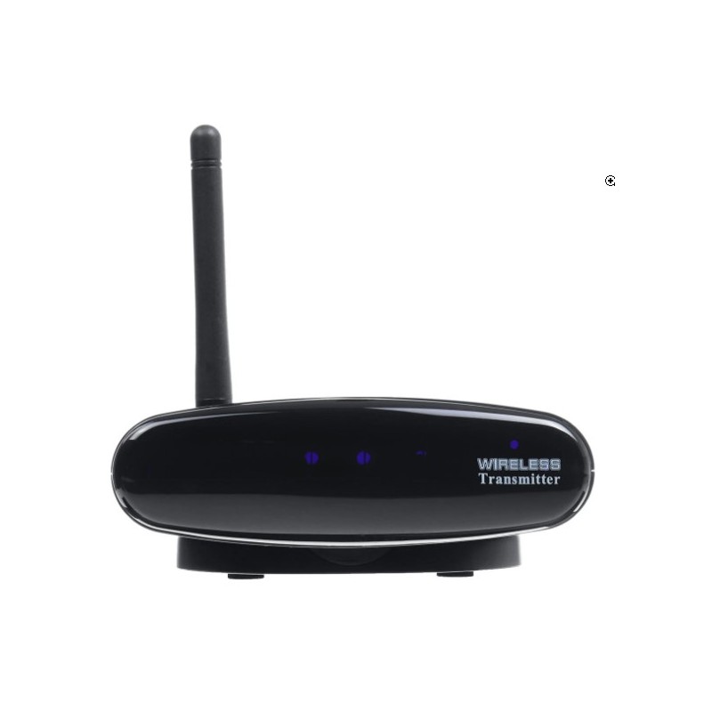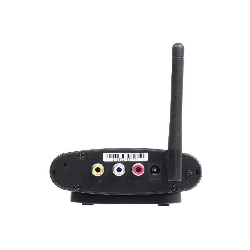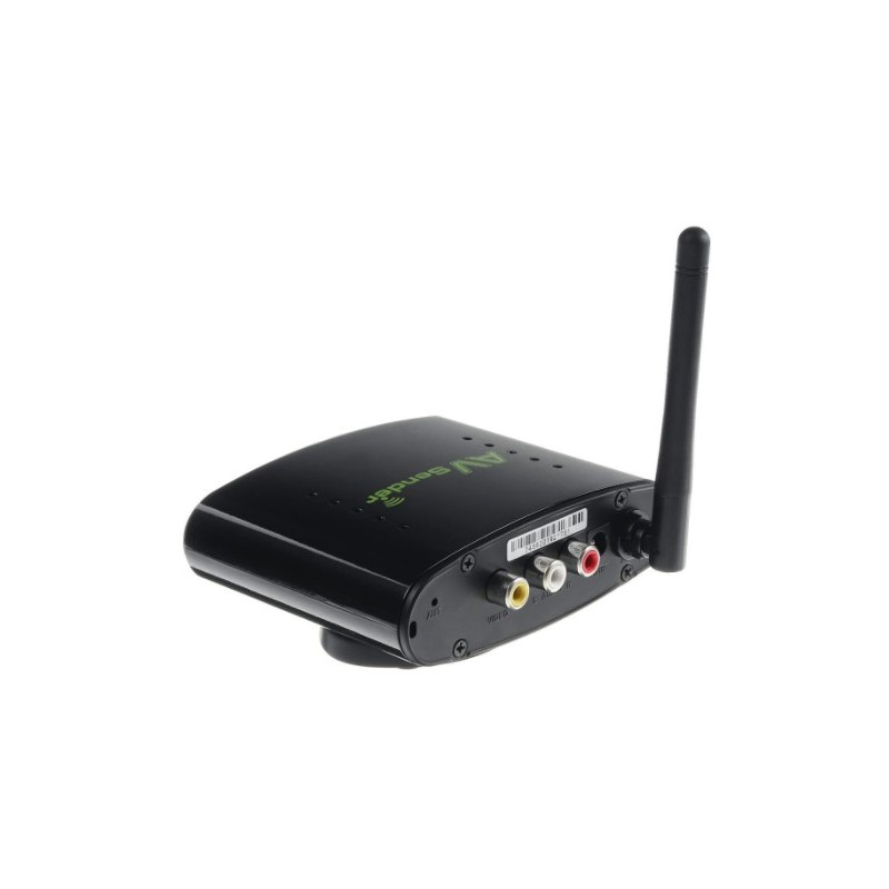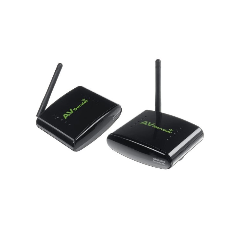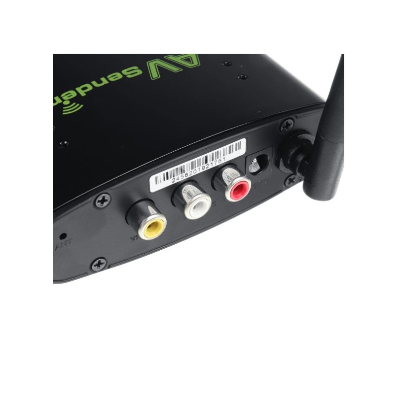 Sistema transmissor e recetor AV sem fios de 2.4 GHz compatível com TV, DVR, câmaras e leitores multimédia. Permite transmitir áudio e vídeo em alta qualidade entre dispositivos sem necessidade de cabos. ◀