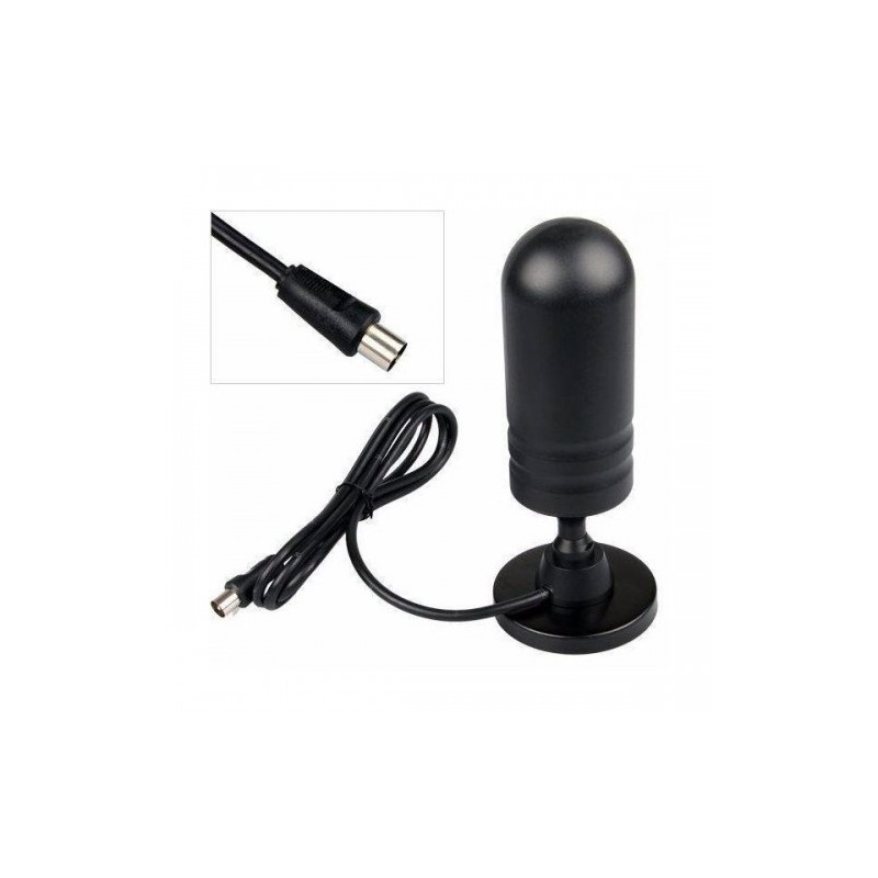 Antena de TV magnética para receção DVB-T em caravanas, autocaravanas e veículos. Utilização em interior ou exterior abrigado. Conector 75 ohm e cabo integrado de cerca de 1,5 metros. Compatível com televisores e sintonizadores TDT.