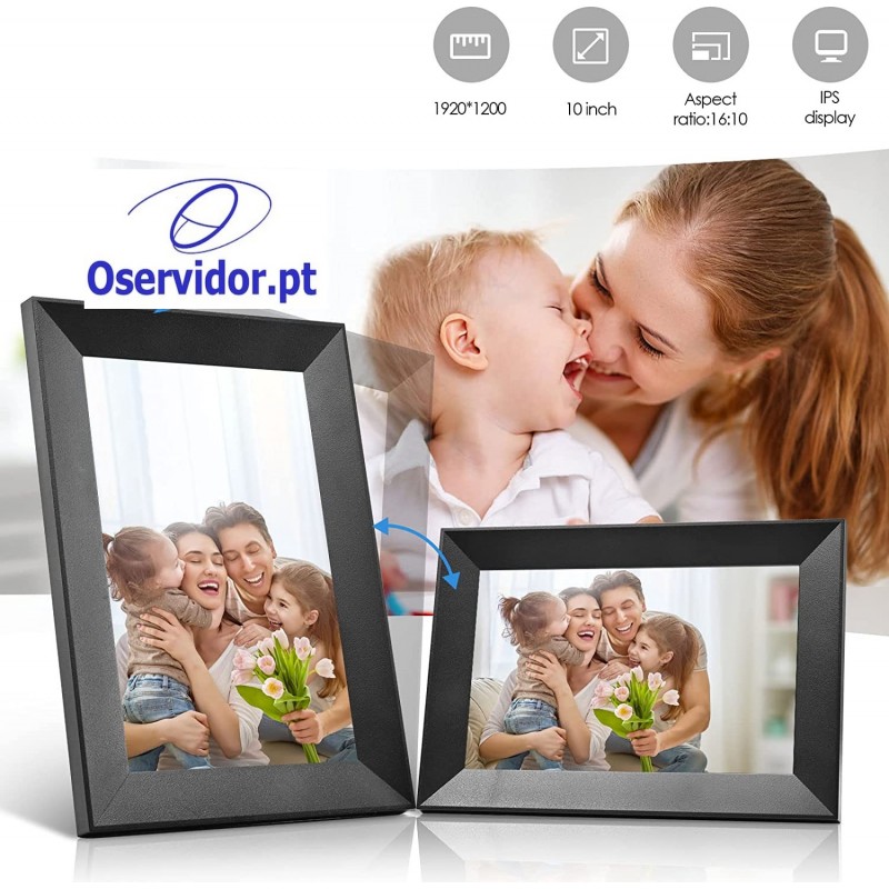 Moldura de Fotos Digital WiFi de 10 Polegadas com Memória de 16GB e Aplicação Frameo - Compartilhe Momentos Especiais em Segundos