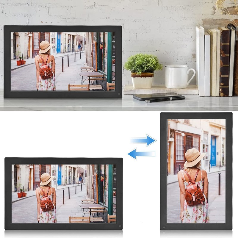 A moldura também possui várias funções, como rotação automática, calendário e relógio, bem como modos de brilho ajustável, modo de suspensão e modo de silêncio automático para atender às suas necessidades.
