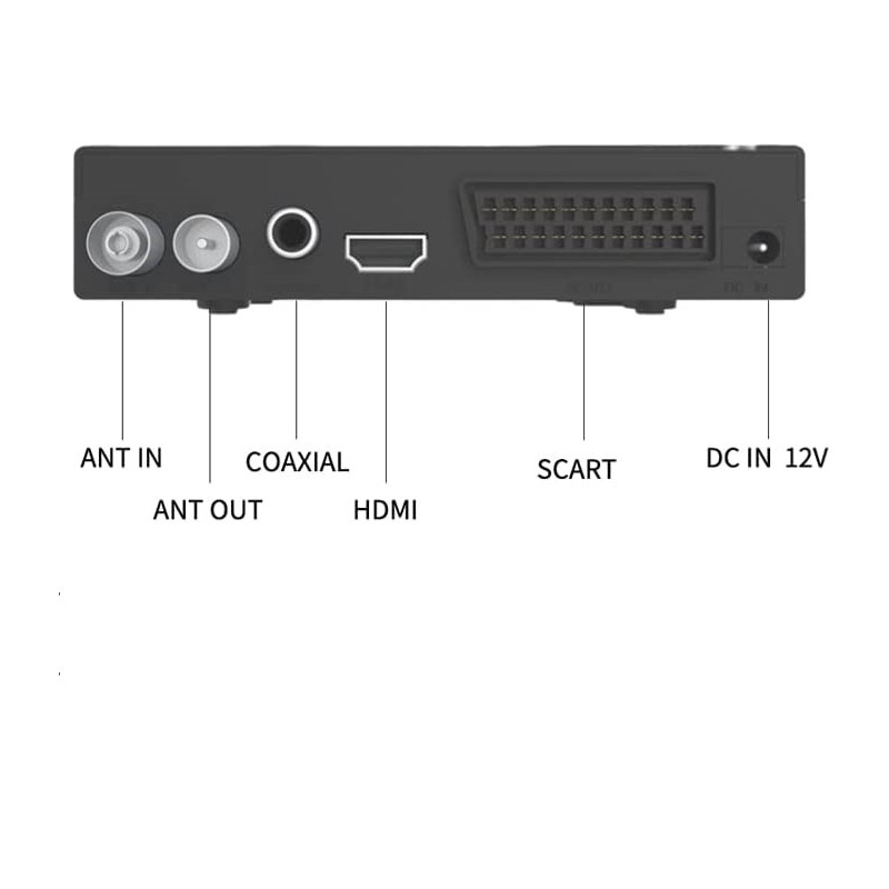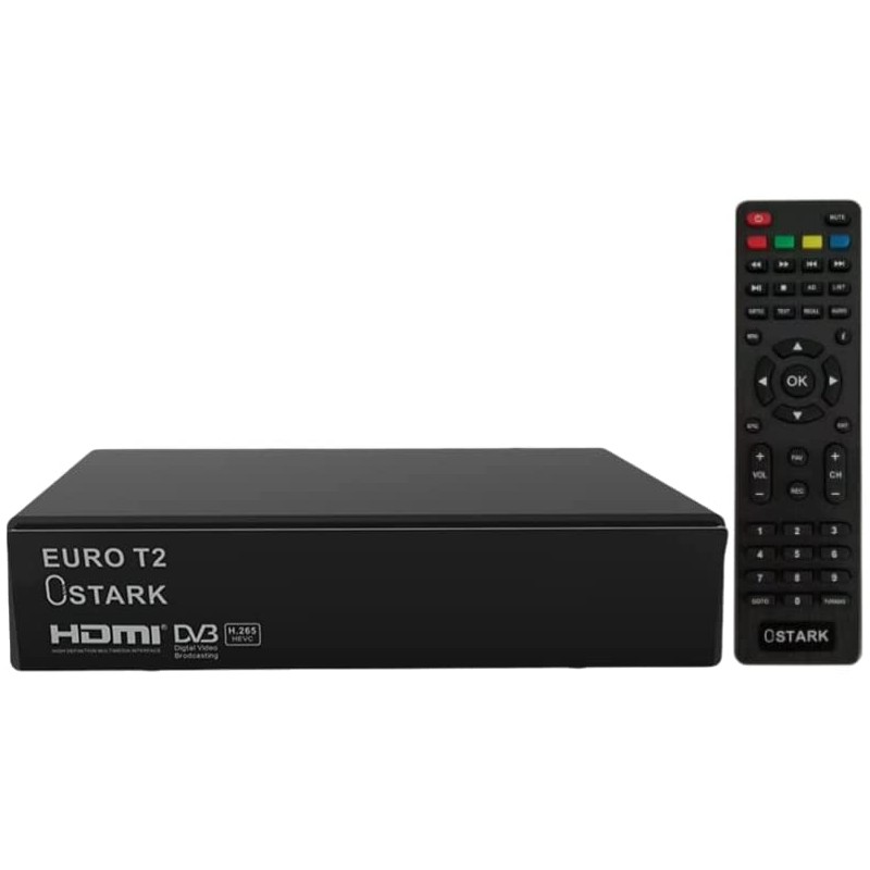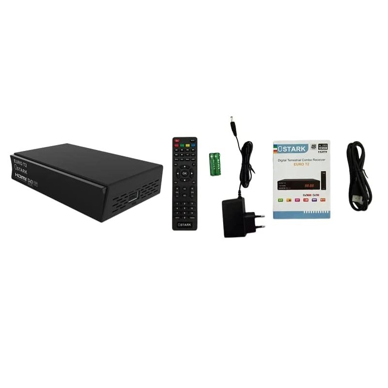 Euro T2 Receptor terrestre TDT TDT2 FTA DVB-T2 DVB-C, H.265 HEVC Full HD PVR, USB duplo, LNB duplo para duas televisões, SCART, HDMI Coaxial
