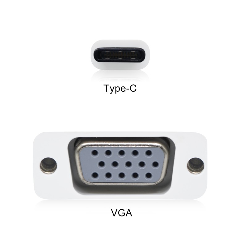 Adaptador USB-C (type C ) para VGA O Adaptador USB-C para VGA permite ligar o MacBook com porta USB-C, o MacBook Pro com portas Thunderbolt 3 (USB-C) ou qualquer dispositivo compatível com USB-C a um projetor, televisor ou monitor com um conetor VGA.