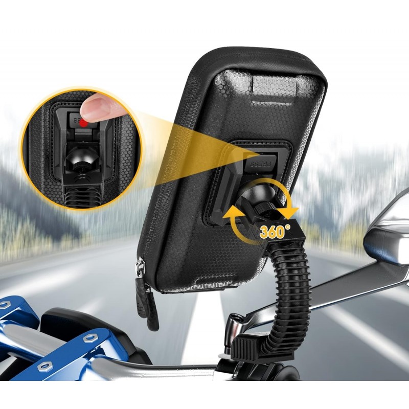 Suporte de Telemóvel para Mota com Rotação de 360° e Capa Impermeável - Ideal para Ecrãs Até 6,7 Polegadas