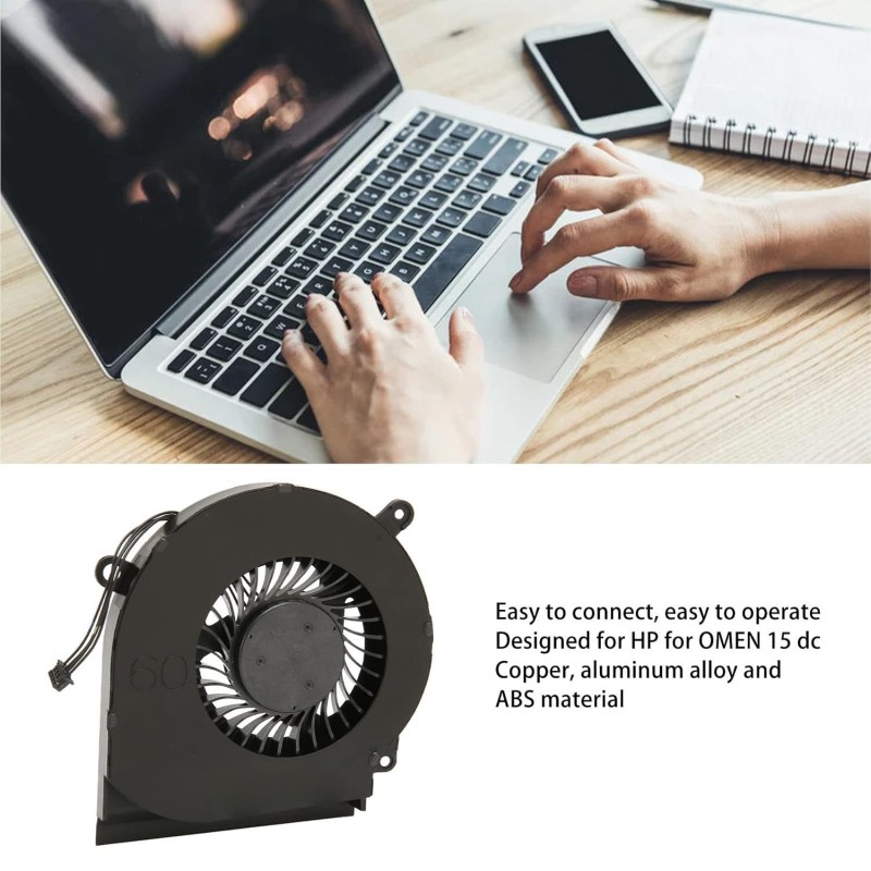 Esta ventoinha de refrigeração CPU e GPU foi especialmente desenhada para os portáteis HP Omen 15 DC, sendo um substituto perfeito para ventoinhas danificadas. É composta por materiais robustos e duráveis como cobre, liga de alumínio e ABS, garantindo uma longa vida útil e desempenho eficiente.