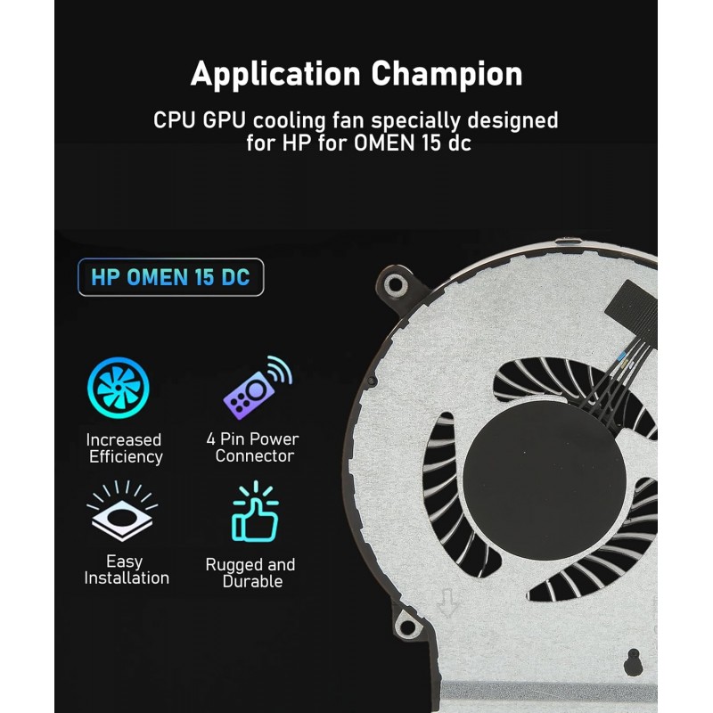 Ventoinha de refrigeração CPU e GPU de substituição silenciosa, compatível com portáteis HP Omen 15 DC. Inclui conector de alimentação de 4 pinos e é fácil de instalar, garantindo maior eficiência e durabilidade. Disponível em várias combinações, conforme a seleção do cliente.