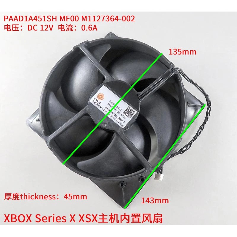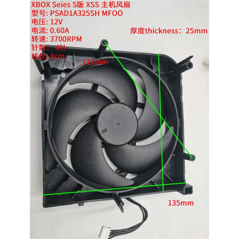 Ventoinha interna de 4 pinos compatível com a consola Xbox Series X. Modelo PSAD1A325SH MF00 PVA130F12M P01. Ideal para substituição em casos de ruído, avarias ou sobreaquecimento.